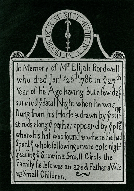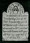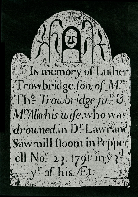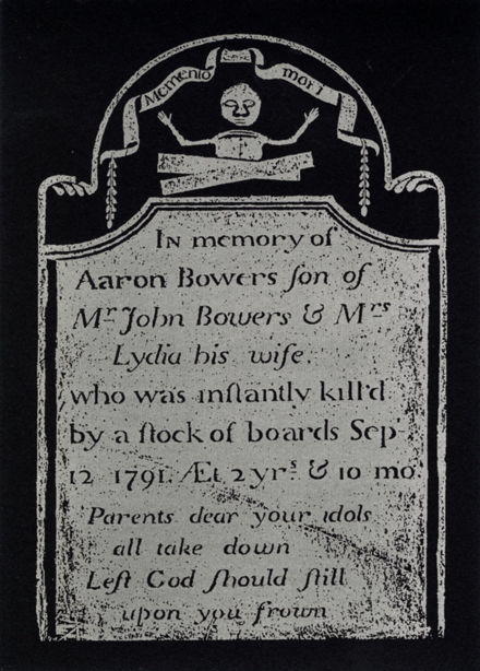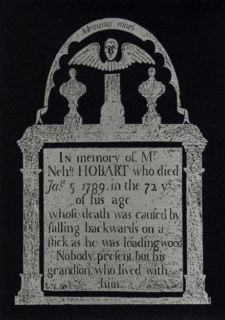 Each 5 by 7 inch post card is from a New England gravestone carving and records a tragic event or unusual fatality during the 18th and 19th centuries. Pardon us for being macabre, but the historical significance and unusual demises including drowning, falls, and even a murder deserve special attention.