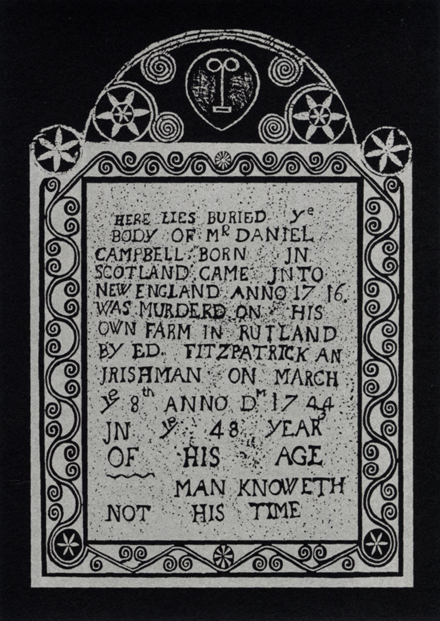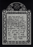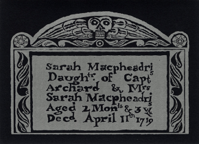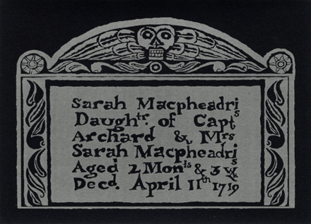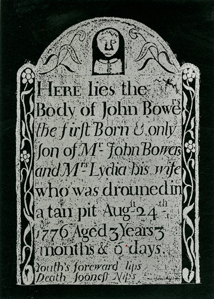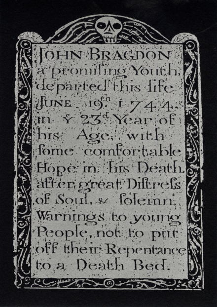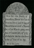 Each post card is from a gravestone rubbing. The reproduced rubbings are printed in silver ink on quality black card stock paper. Reverse the post card to the white side and you can easily write your message.